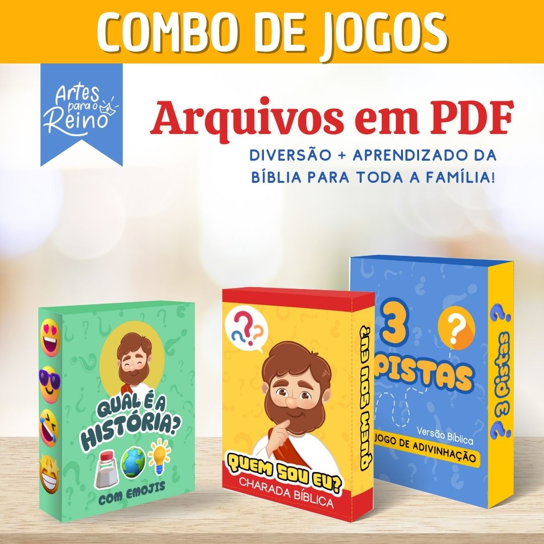 Prepare-se para momentos inesquecíveis com este combo especial que reúne três jogos cristãos educativos em um só pacote! Ideal para ministério infantil, encontros de família, células, EBD ou momentos de lazer que também edificam.